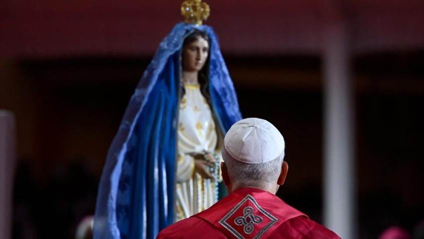 Este Santuário, dedicado à Imaculada Conceição, foi espontaneamente “rebatizado” pelos fiéis como Santuário da “Mãe do coração”. “É um título belíssimo”, disse o Santo Padre, que nos faz pensar no Coração de Maria: um coração límpido e sábio. Assim, rezar o Terço “compromete-nos a amar cada pessoa com coração maternal, de forma concreta e generosa, e a dedicar-nos ao bem uns dos outros, especialmente dos mais pobres”.